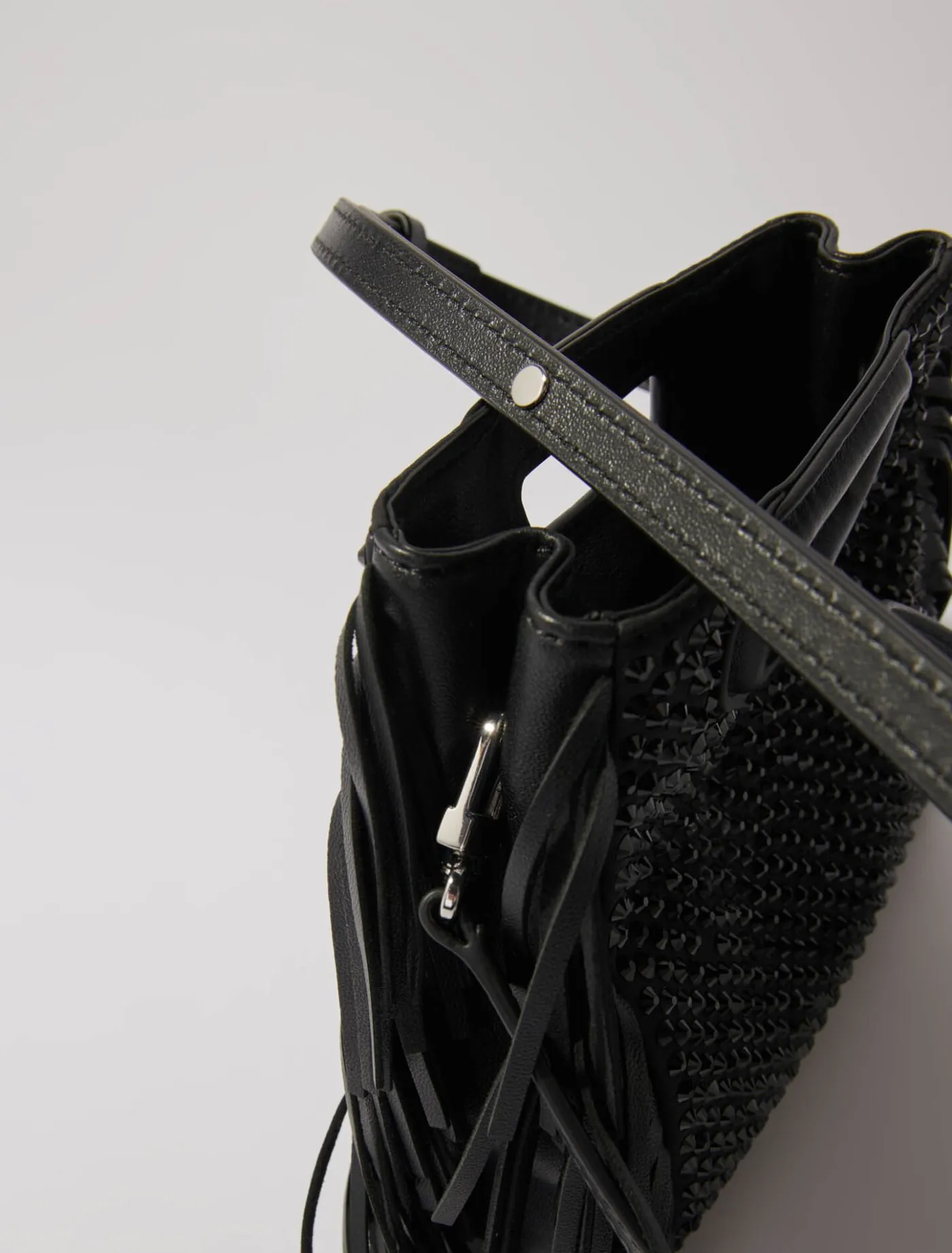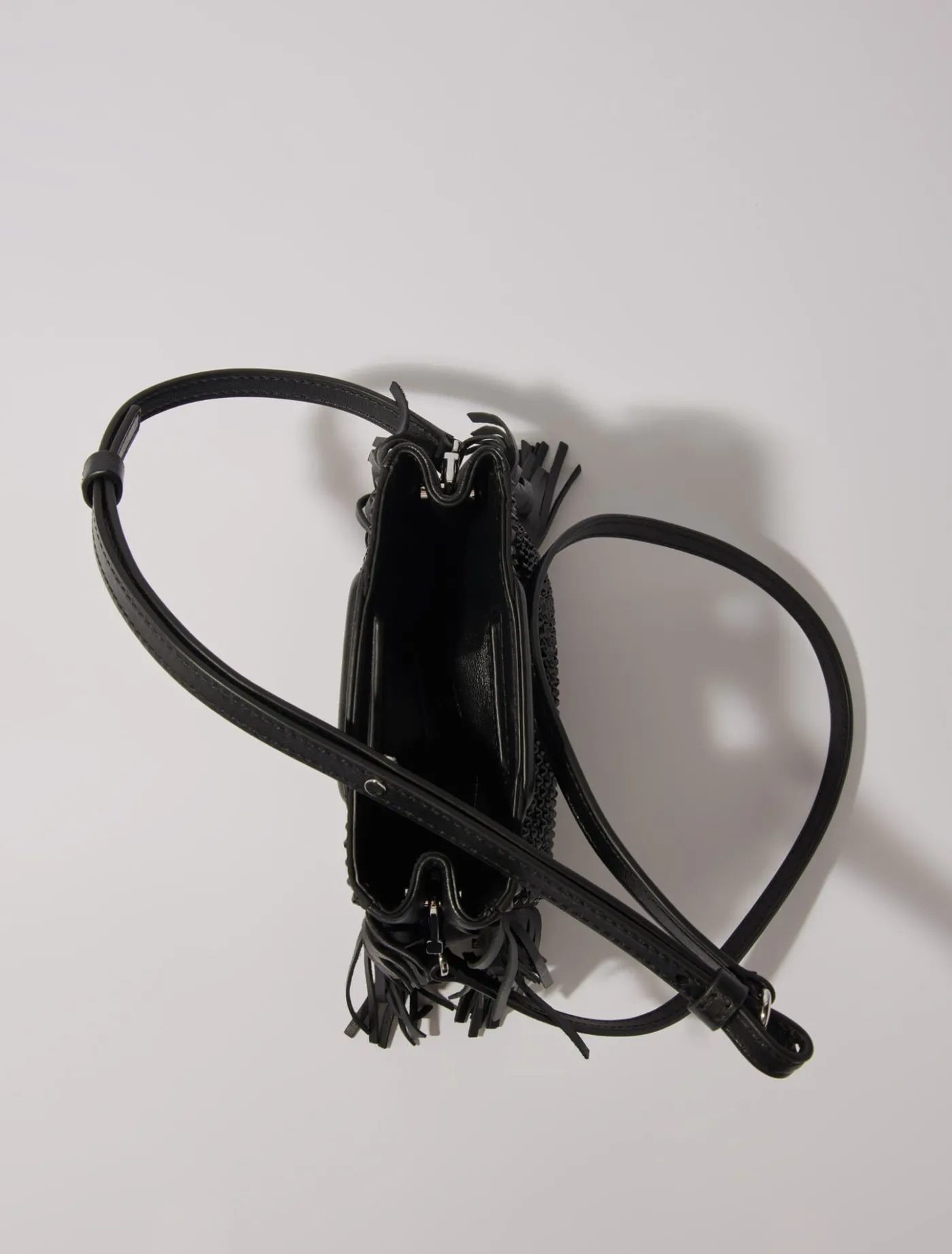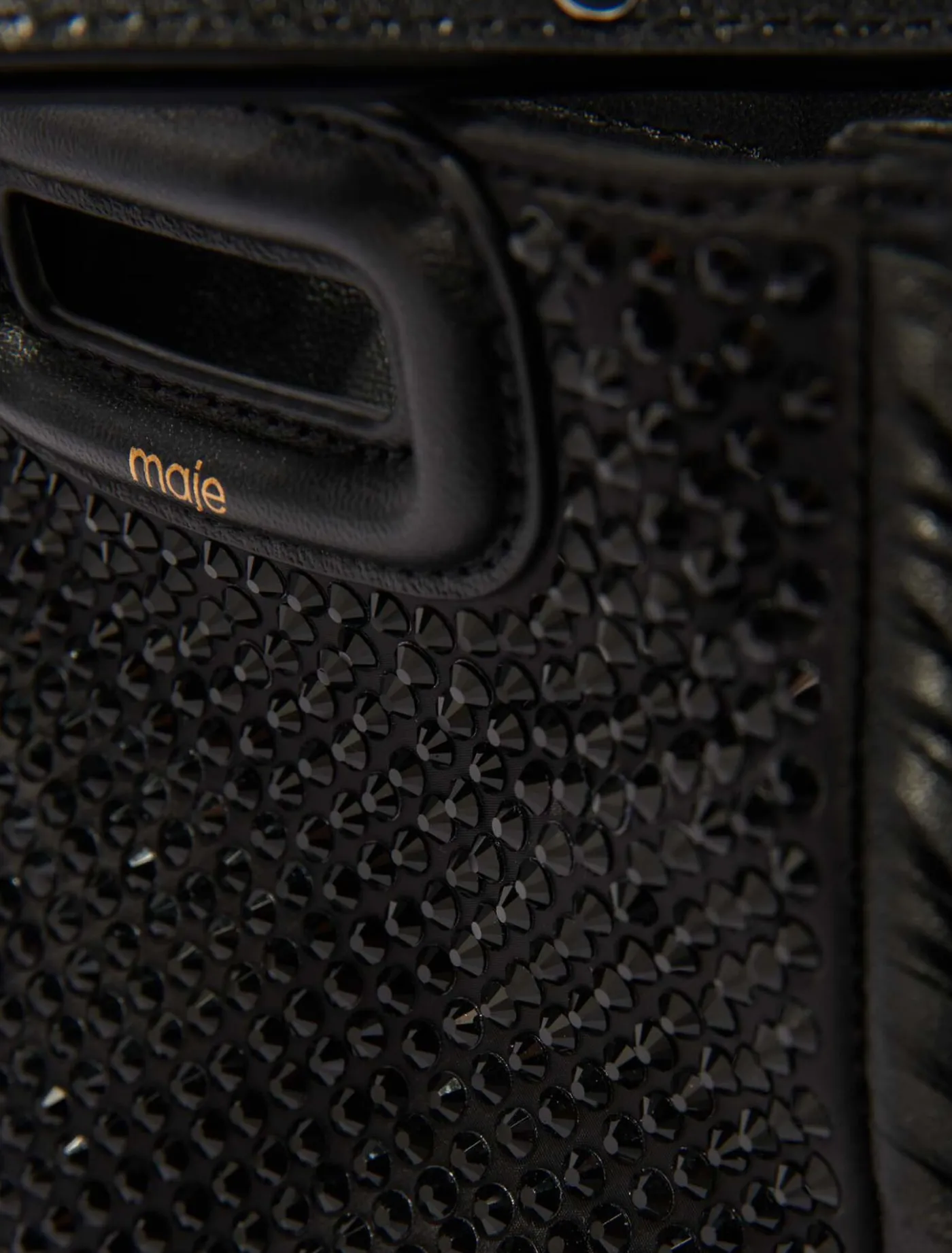 Maje’s iconic M bag comes in a mini version studded with all-over tone-on-tone rhinestones. Embellished with fringe detailing on the sides and a sheathed handle, it features an embossed logo and a signature engraved on the lobster clasps. It has a practical magnetic fastening and an adjustable, removable strap that allows it to be carried in a variety of ways: by hand, on the shoulder or crossbody.
