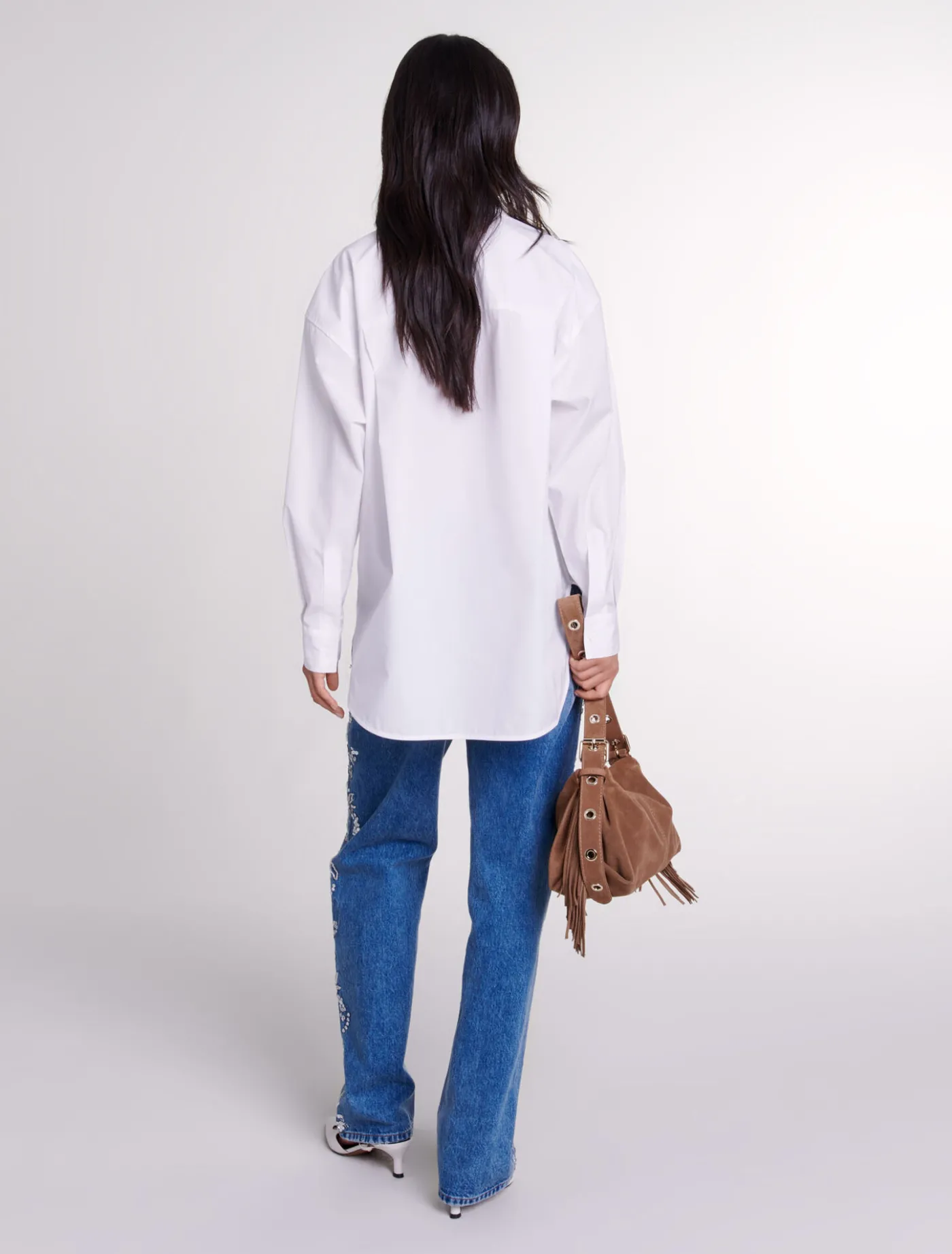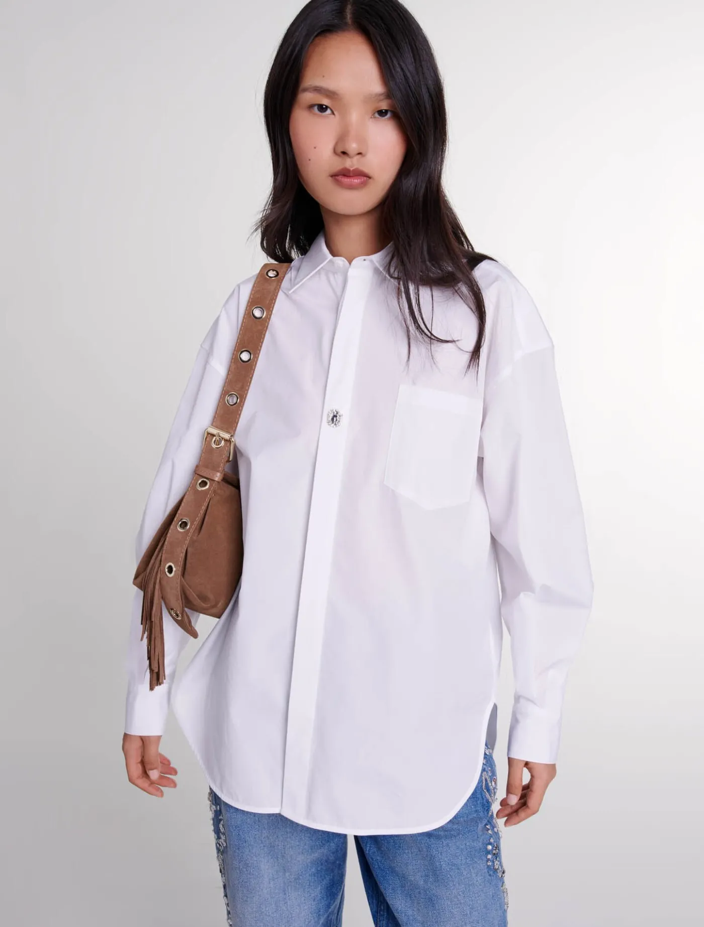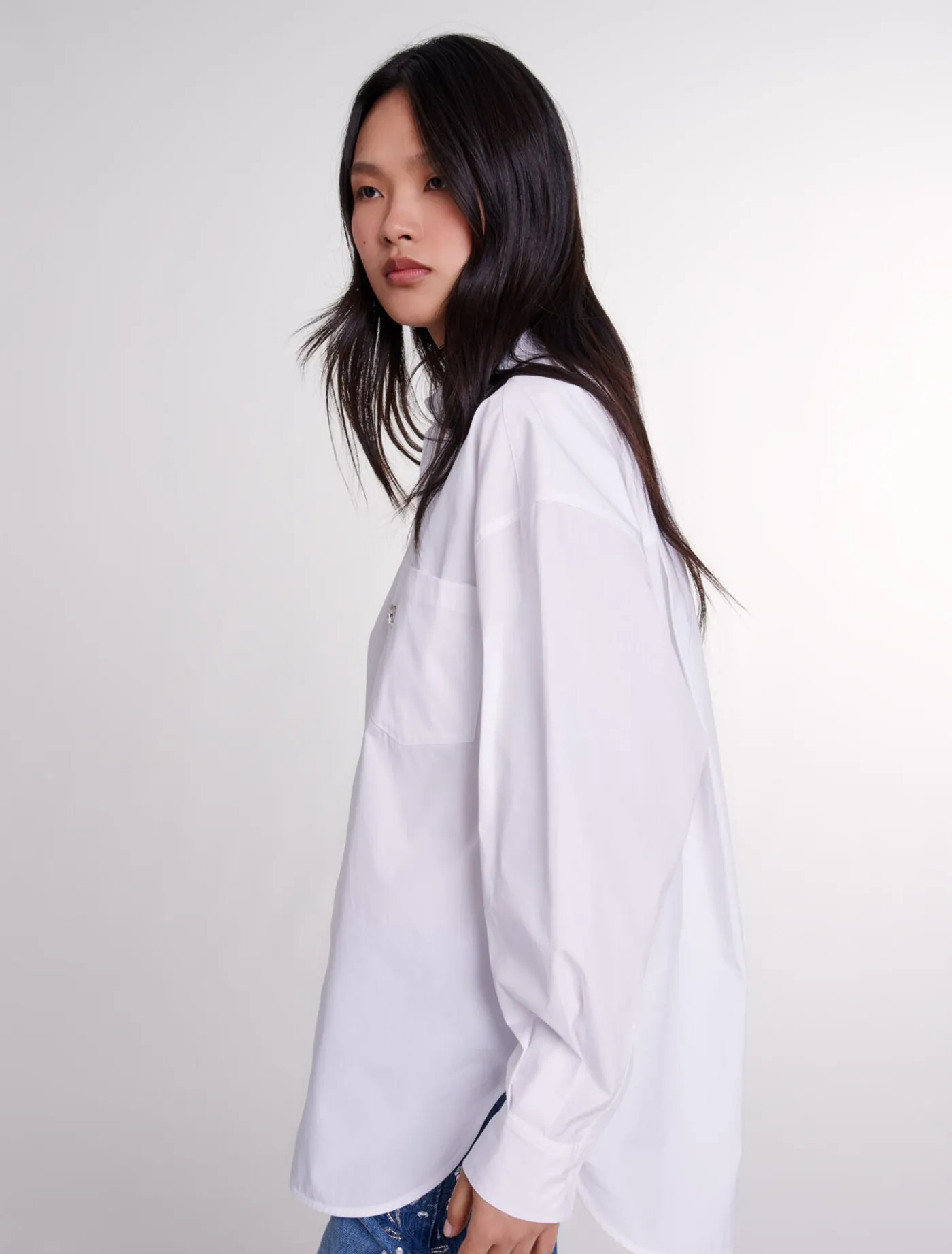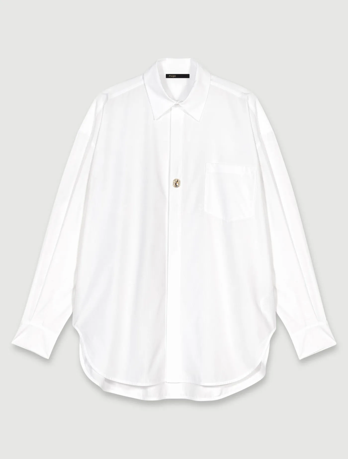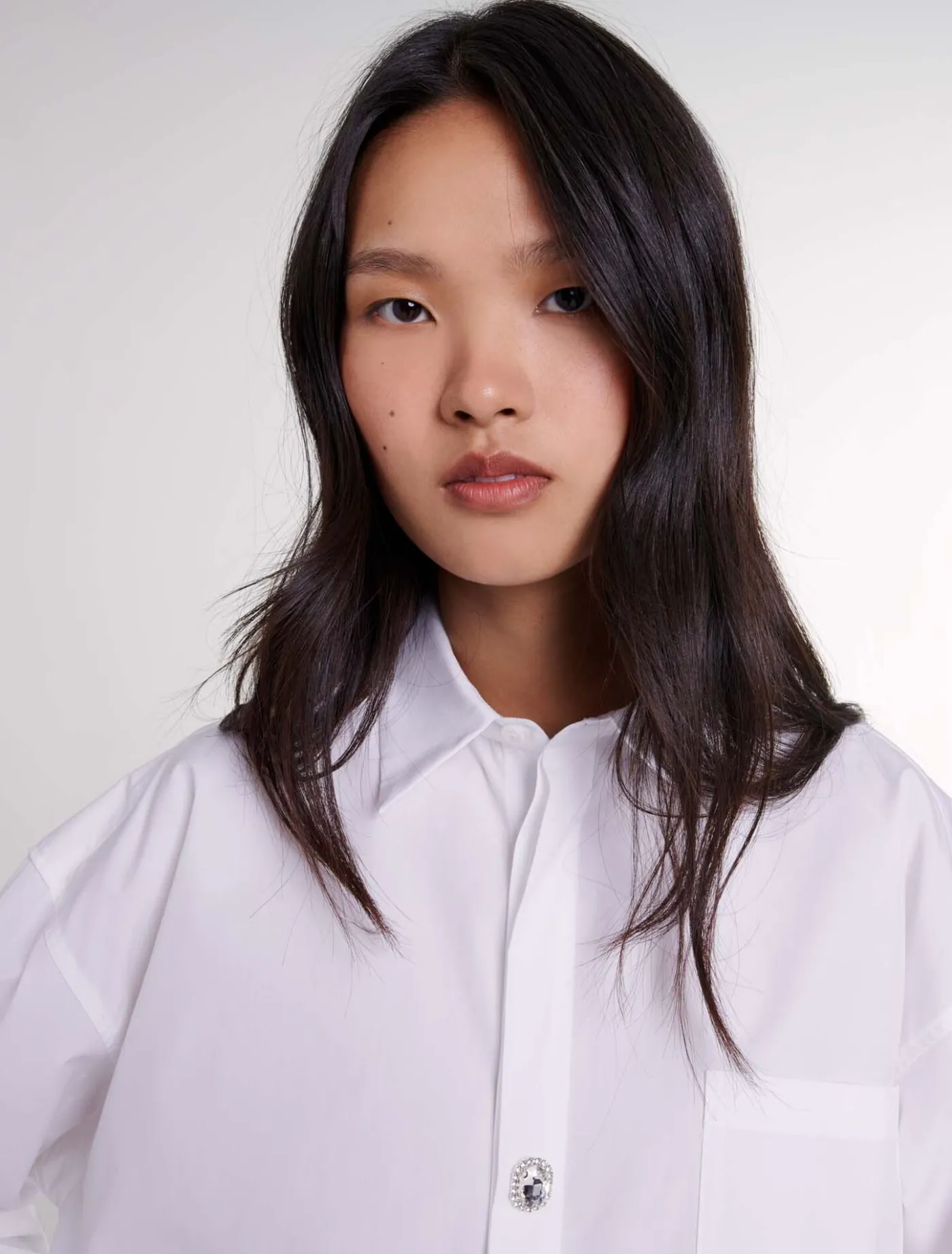 This long shirt is a wardrobe staple, with its patch chest pocket and curved, shirt hem. And which chic detail will really set off your outfit? It boasts a jewellery button with diamantés on the button placket.