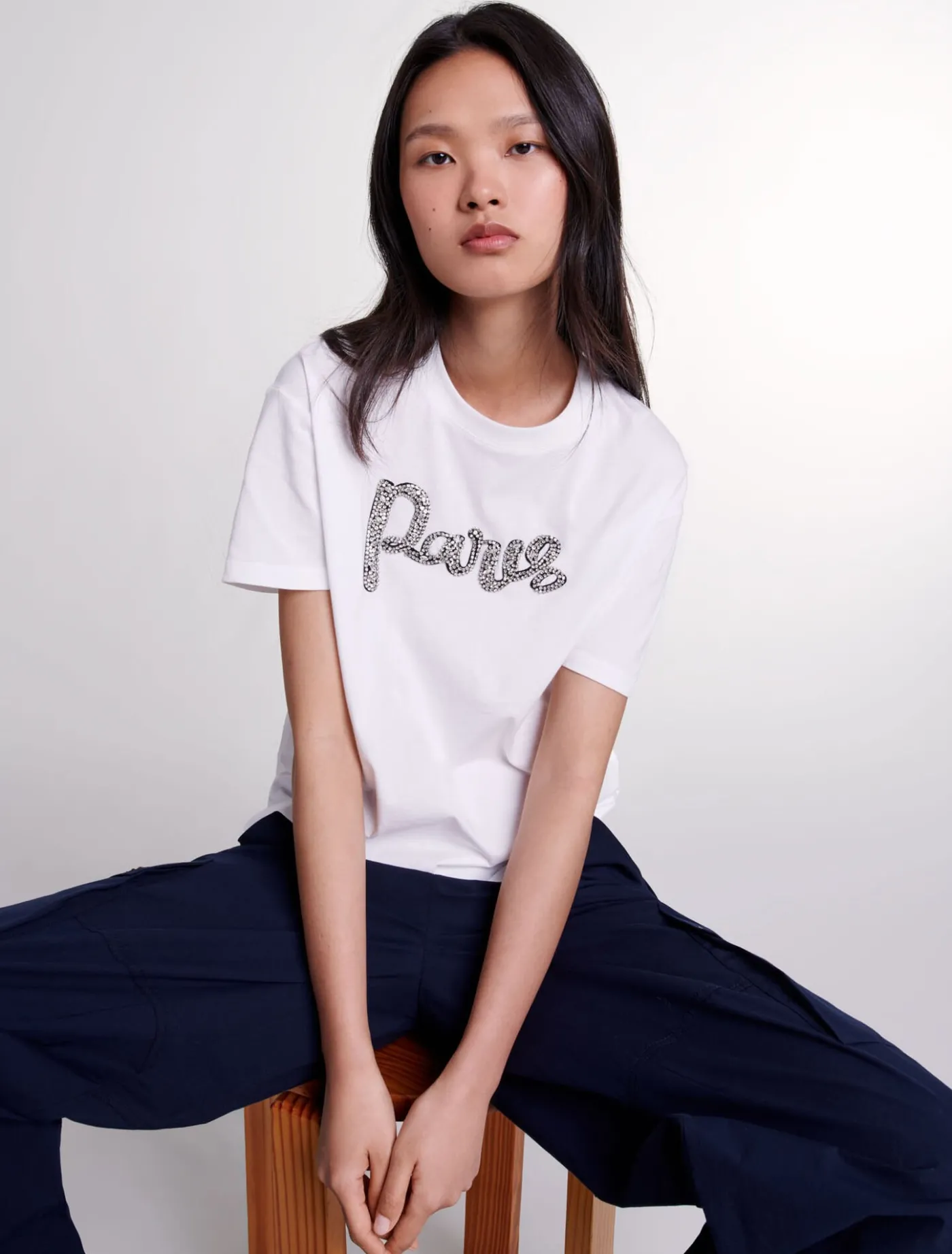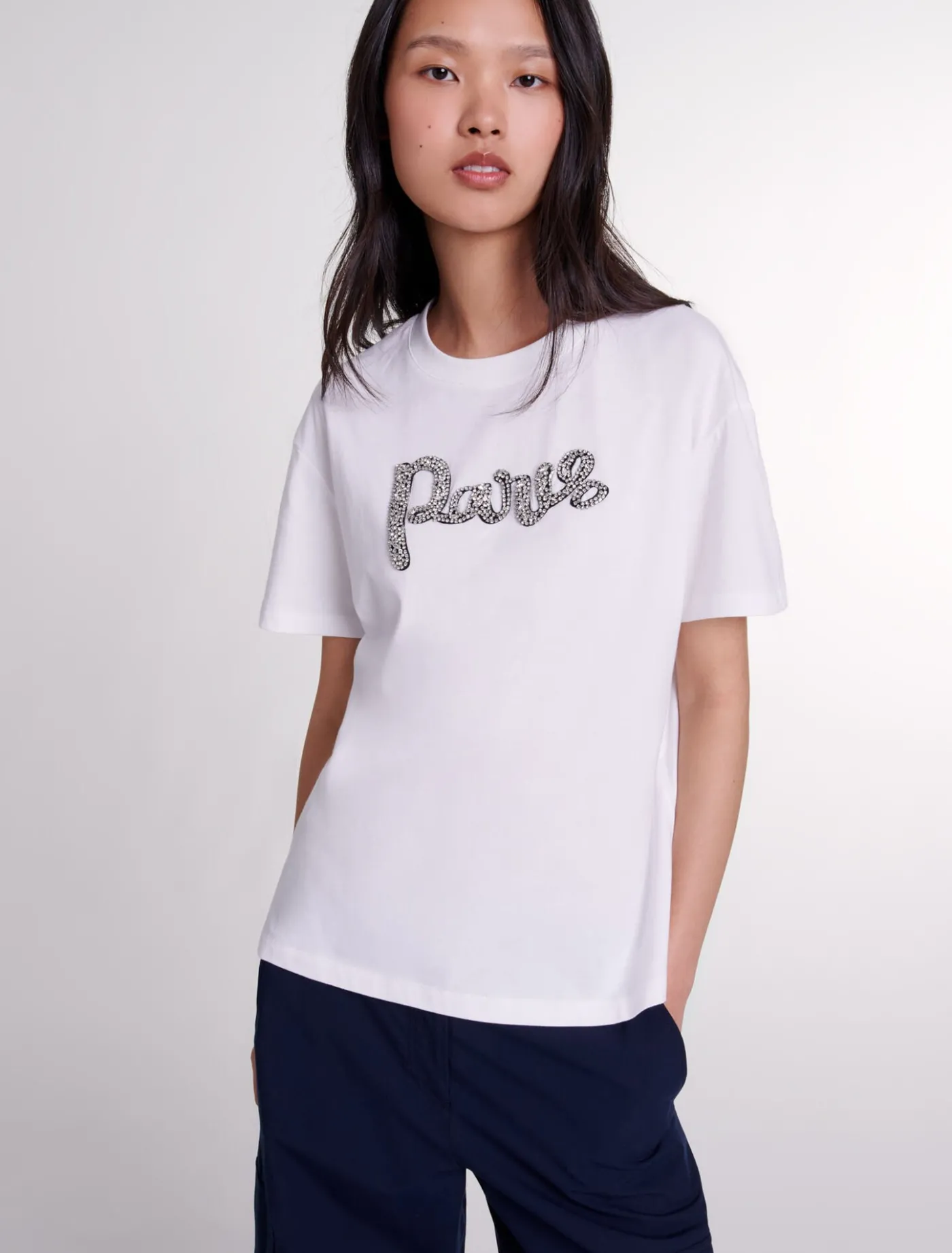 Paris rhinestone T-shirt^Maje Cheap