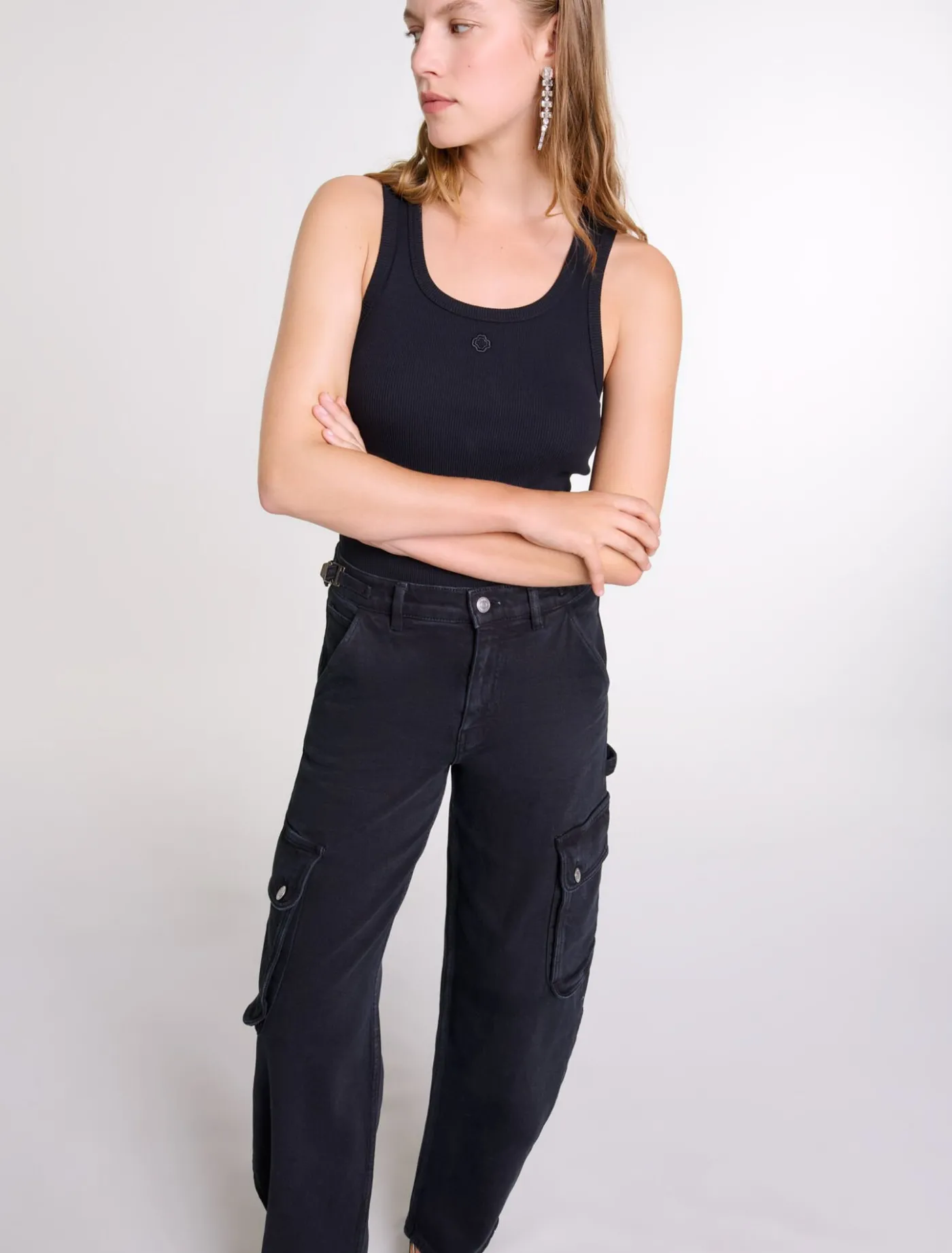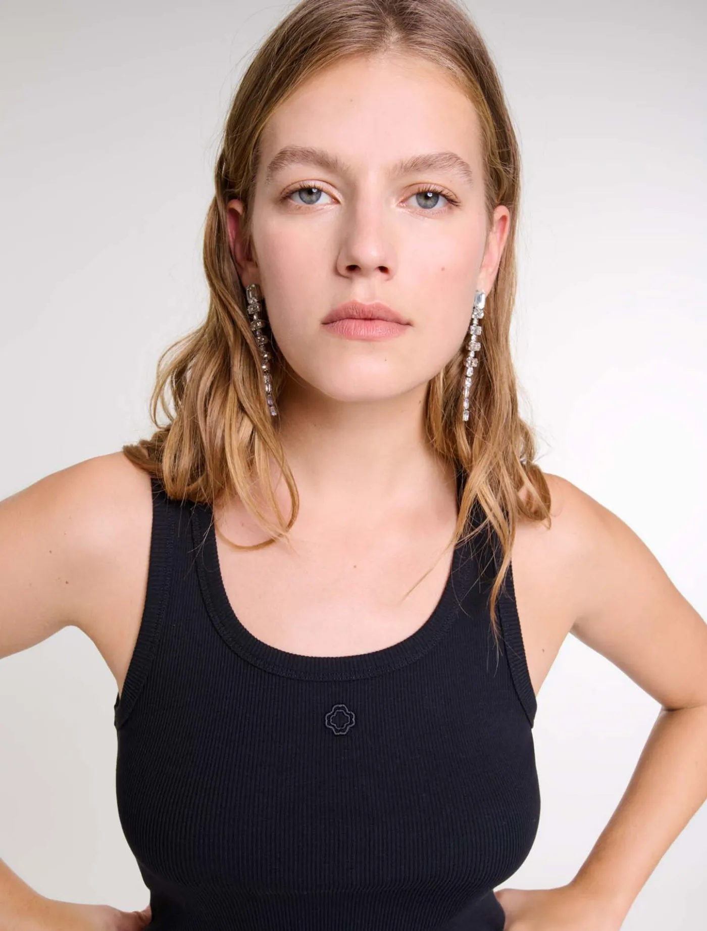 This season’s star piece, the classic ribbed knit tank top, has been updated with sexy details to give your everyday silhouettes a new spin. Featuring wide straps and a round neckline, it also has a tone-on-tone Clover patch. Inspired by the elegance of the ’90s, it can be worn on its own or layered with shirts for mid-season.