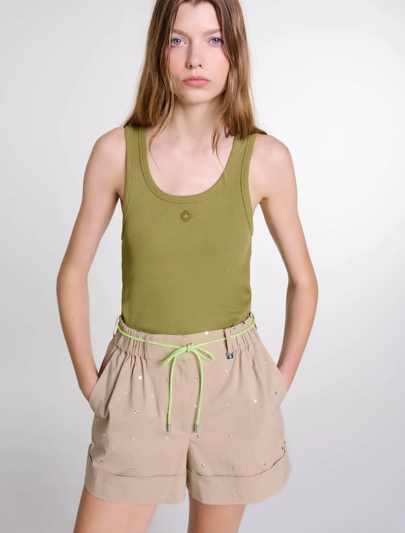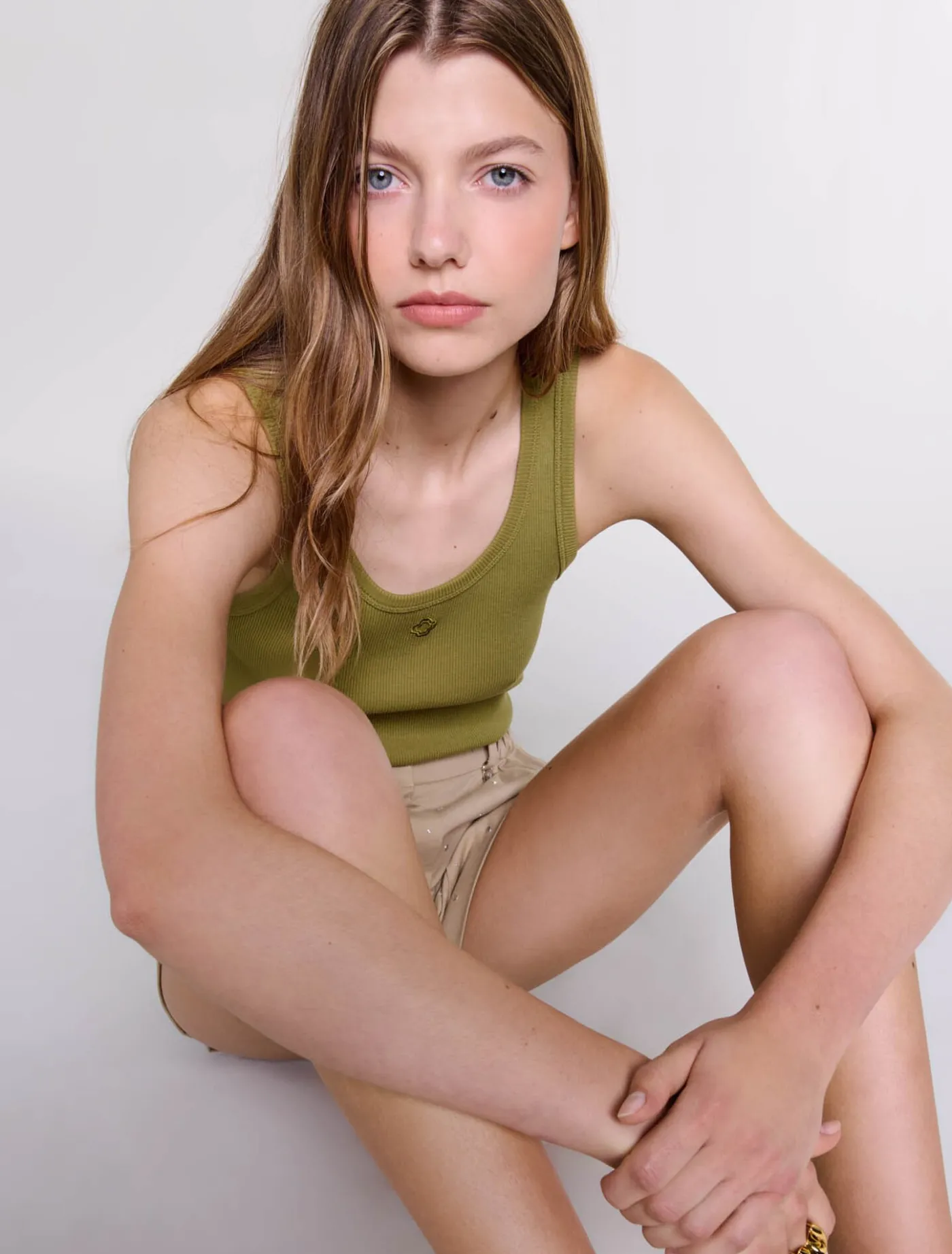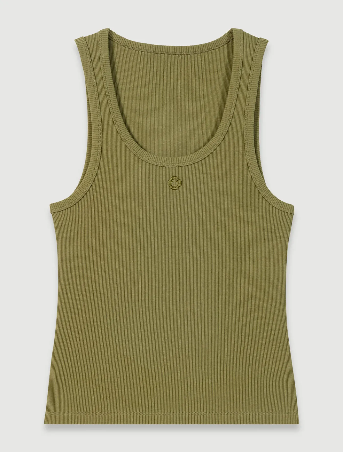 The classic rib knit vest top has been updated with a signature detail to give your everyday silhouette a new twist. Featuring wide straps and a round neckline, it also has a tone-on-tone Clover patch.