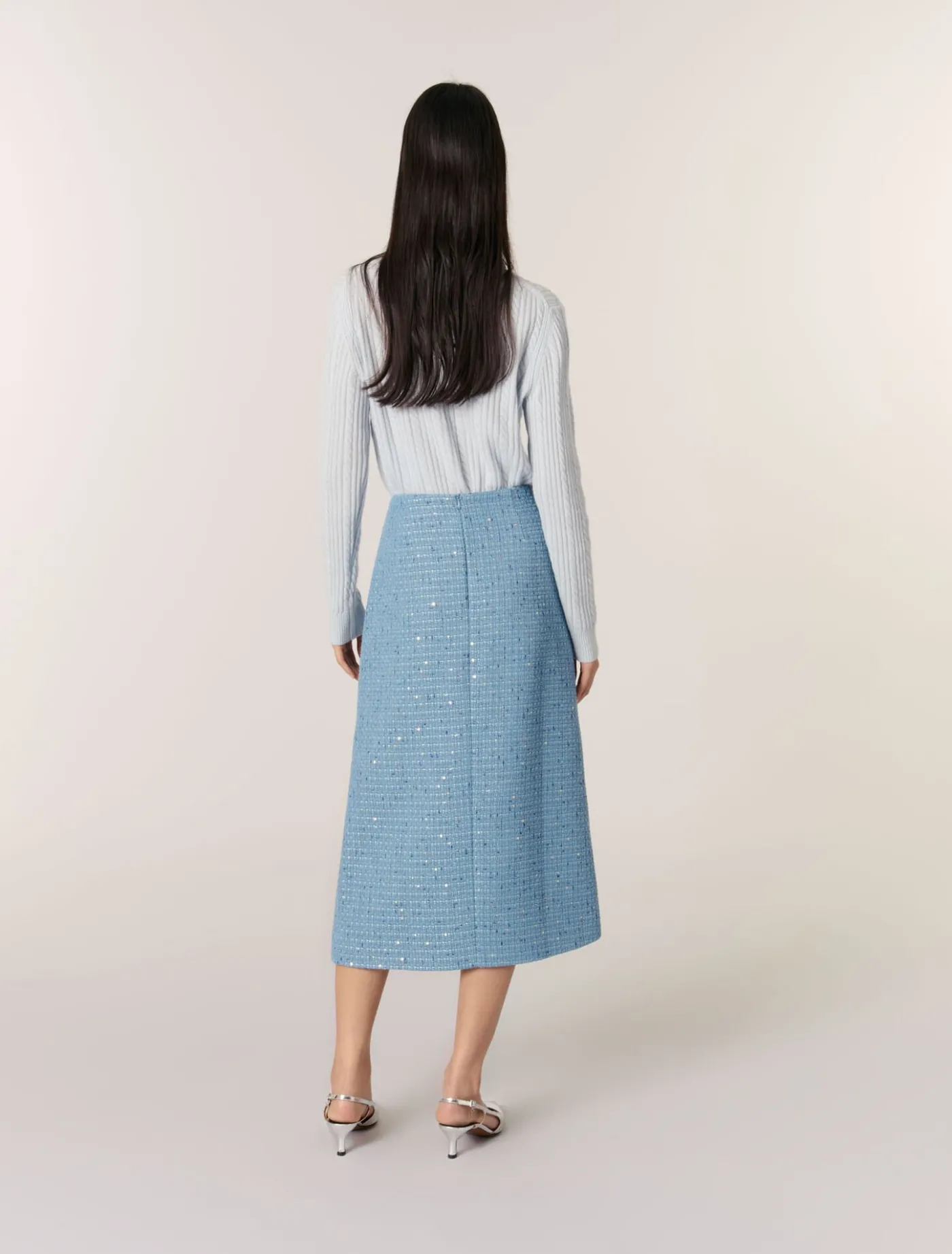 - Sequin tweed midi skirt