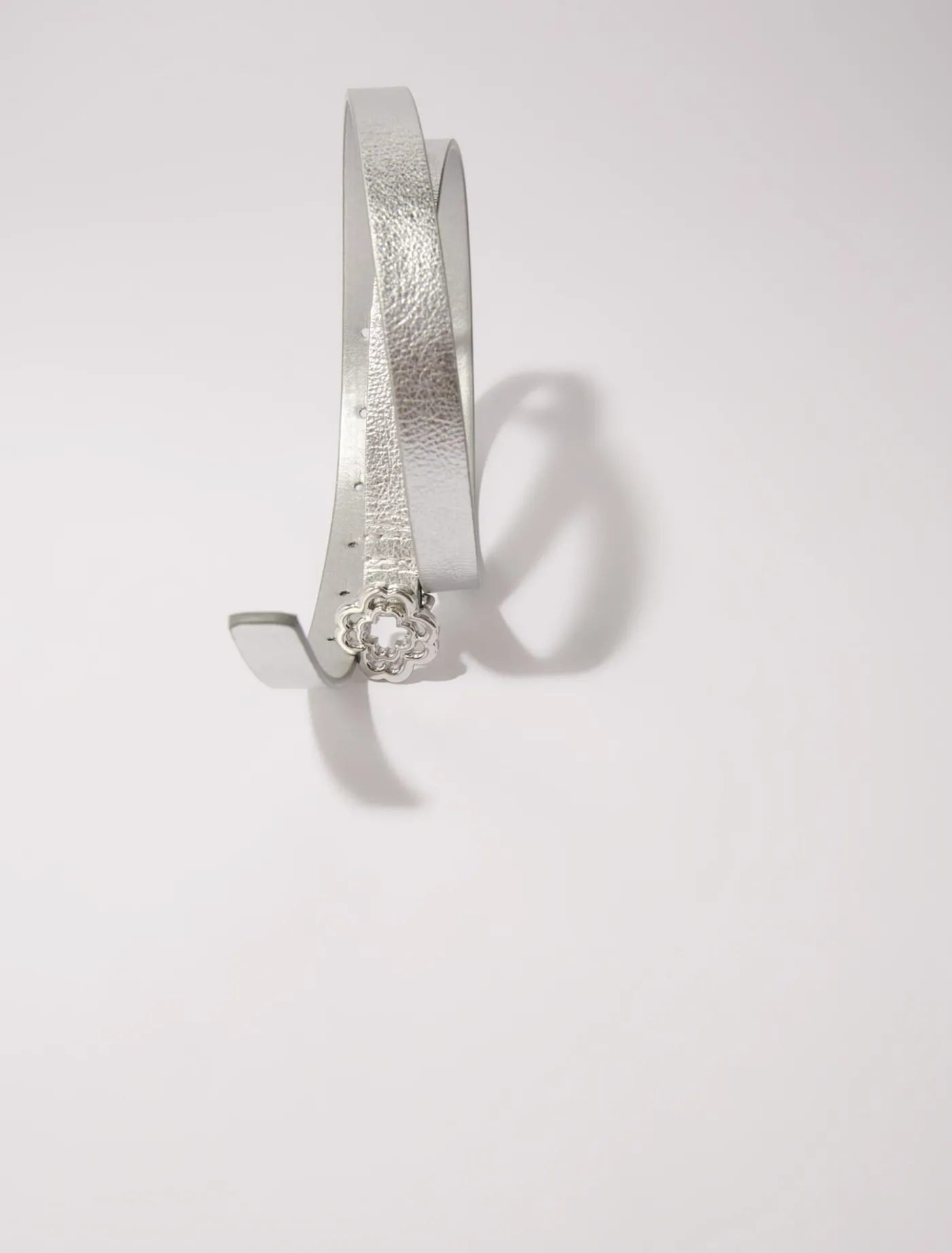 Add a golden Clover buckle to your outfit with this metal belt. Slim and adjustable, slip it into the belt loops of jeans or over a floaty dress to emphasise the waist in style.