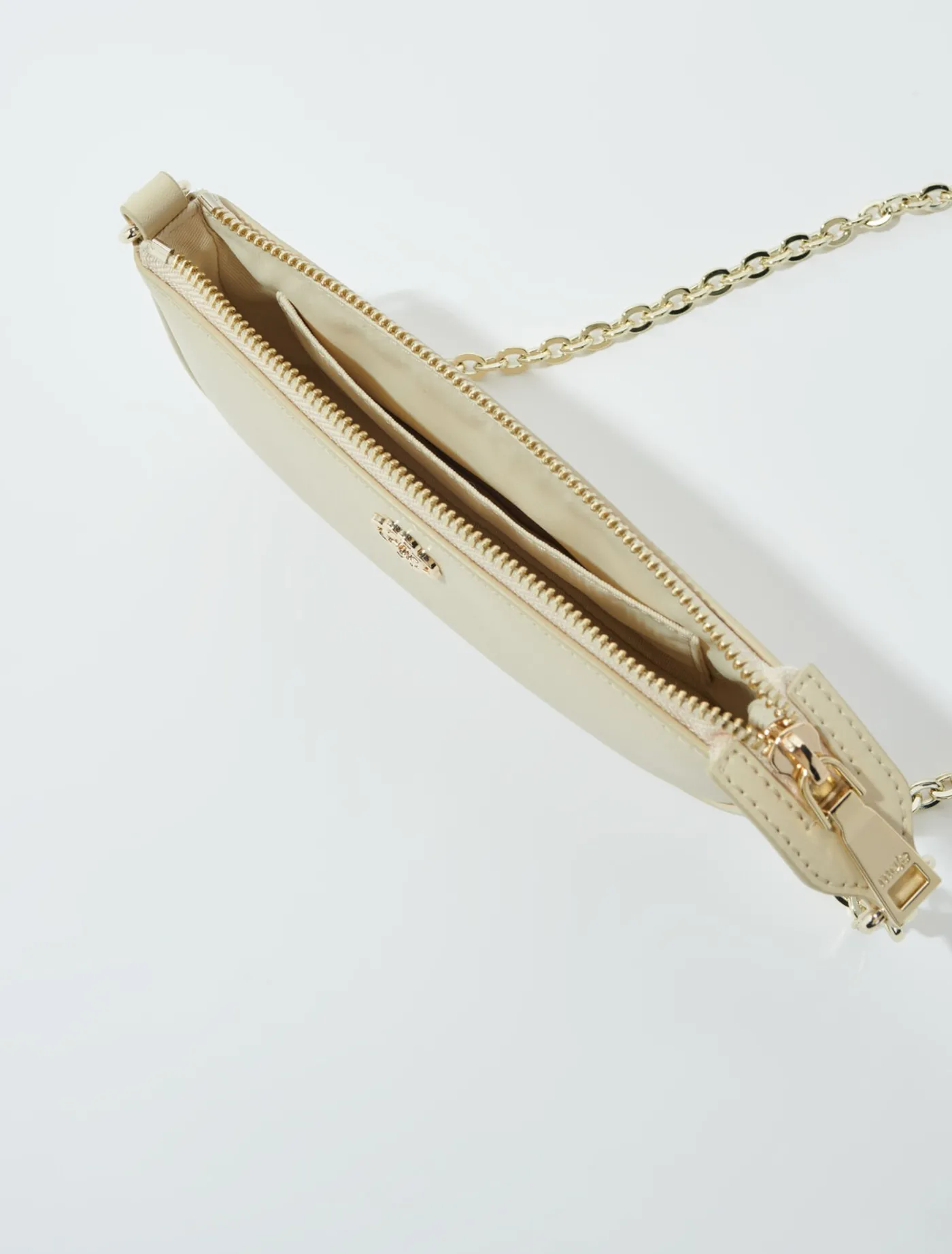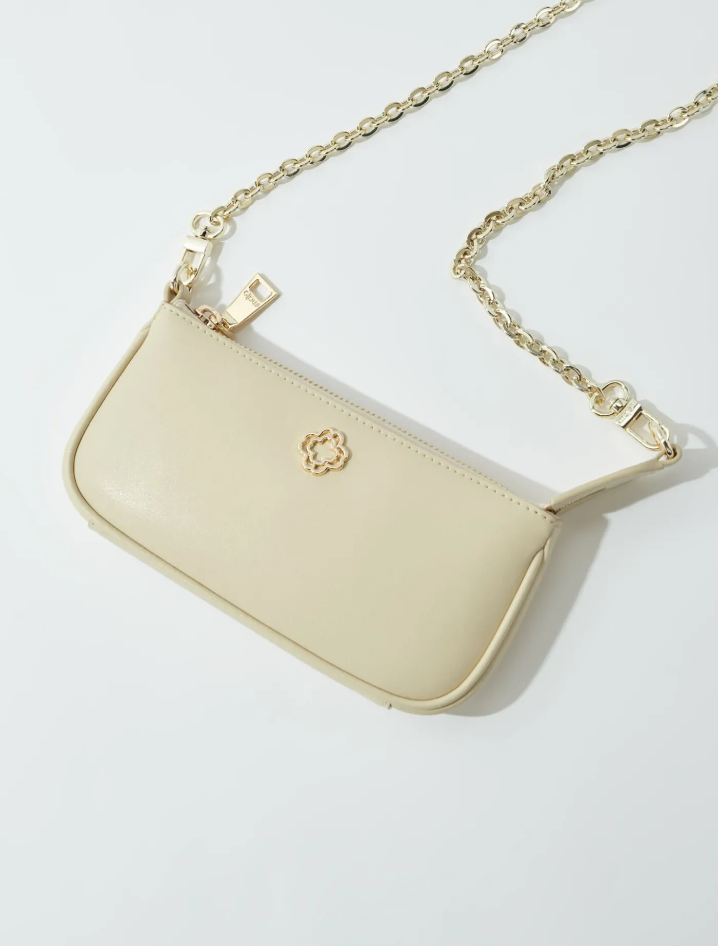 Made from plain leather, this mini clutch has a zip fastening and features a signature gold Clover on the front. Perfect for all occasions, it comes with two detachable shoulder straps for different types of carrying: a short leather strap for carrying by hand, and a long chain strap for carrying over the shoulder. It’s both chic and practical, and clips onto the matching tote bag.