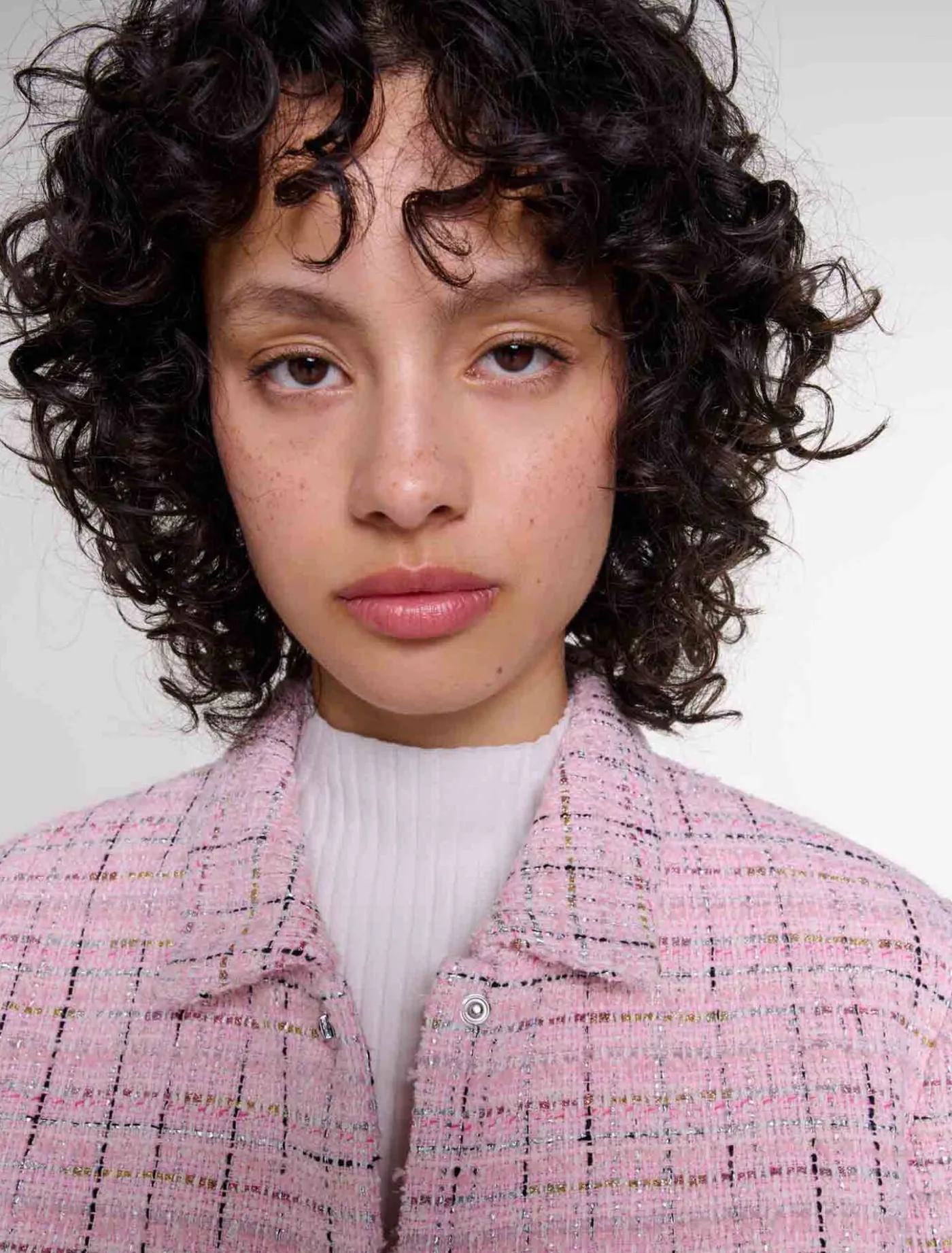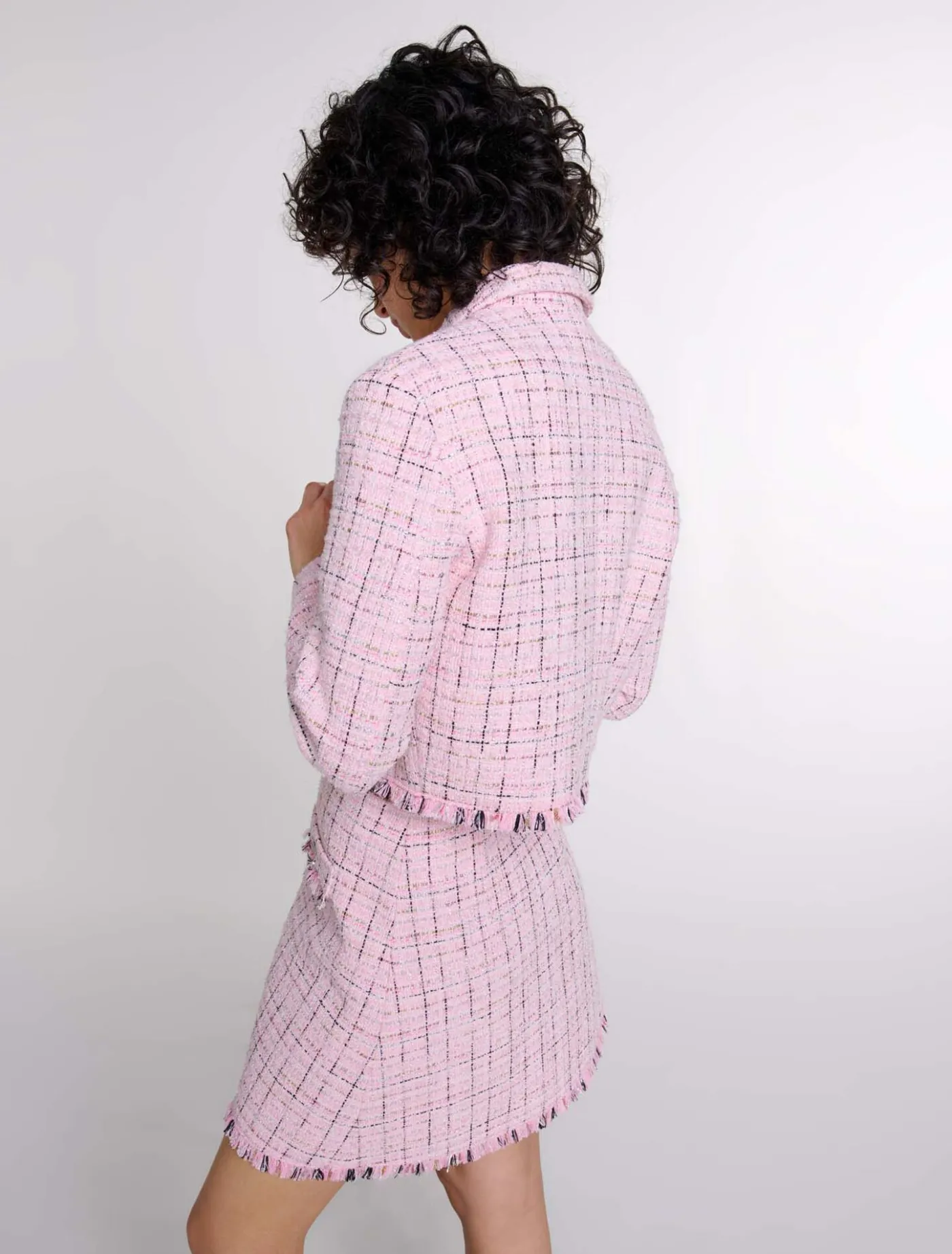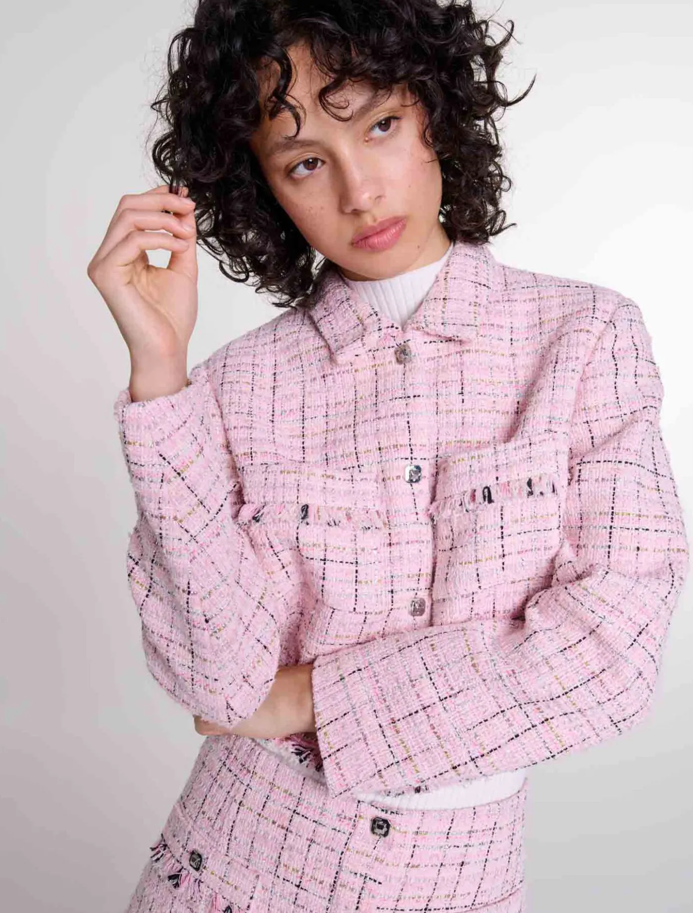 - Short, straight-fit jacket in tweed with metallic threads