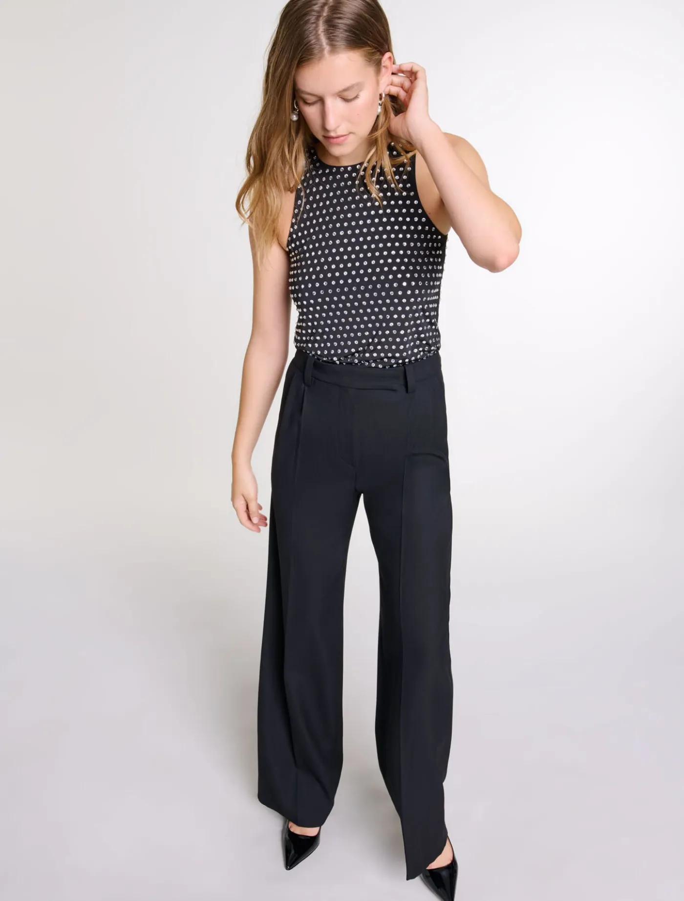 A classic piece for women’s wardrobes, these suit trousers have a wide-leg, rippling style. They have two pockets and full-length creases for an elegantly structured silhouette.